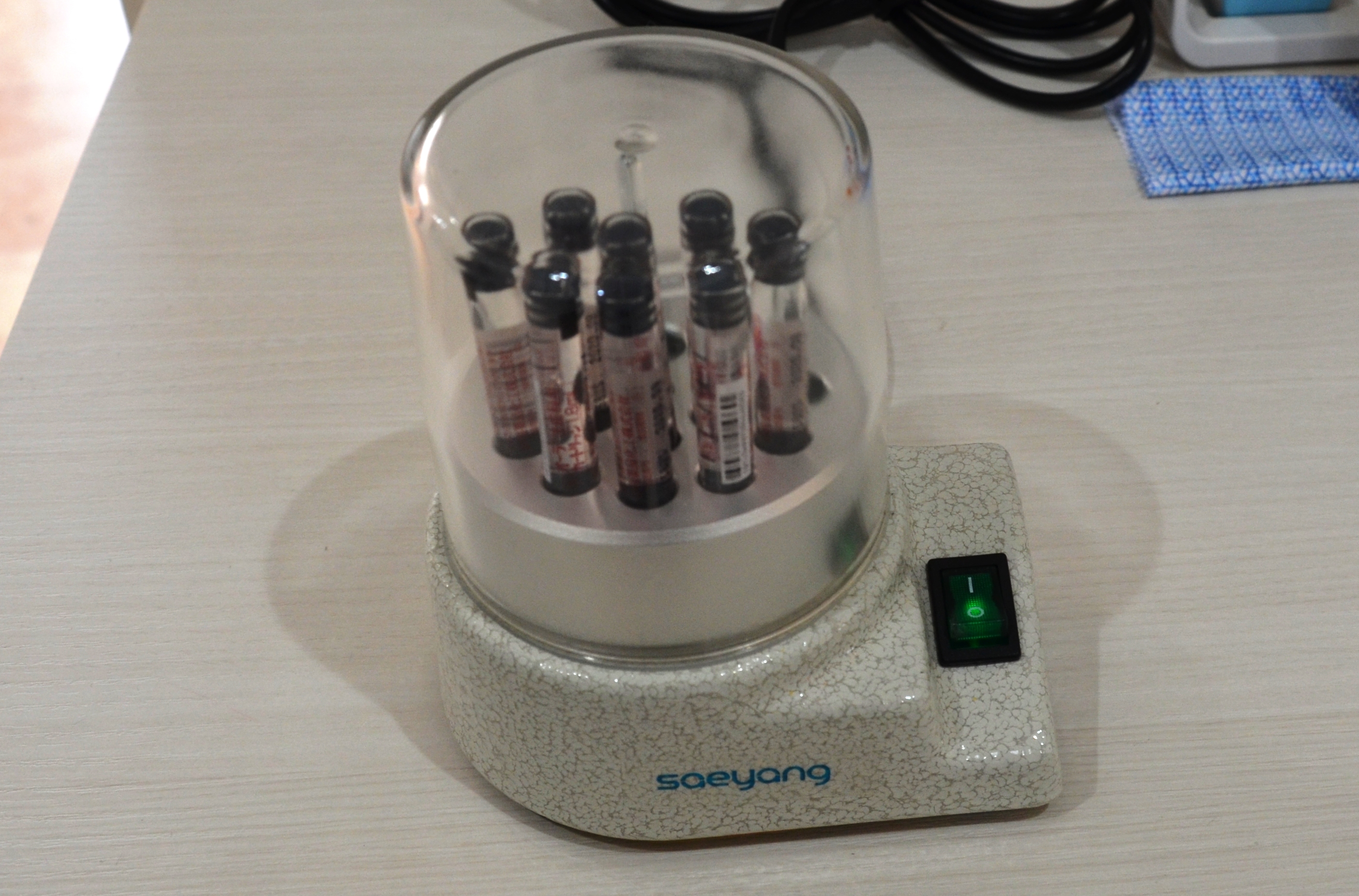 麻酔の液を体温程度に温める機械で、温度差による傷みを軽減させます。